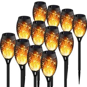 KYEKIO Upgraded 12Pack Torches, Solar Lights Outdoor, 12LED Solar Torch Lights with Dancing Flickering Flames, Waterproof Landscape Decoration Flame Lights for Garden Pathway Yard-Auto On/Off