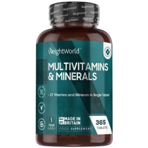 • Multivitamins and Minerals – 365 Vegetarian Multivitamin Tablets (1 Year Supply) – 27 Daily Vitamins and Minerals Complex – Multivitamin Tablets for Men & Women – One A Day Multivitamins – ​Made in UK