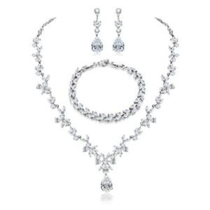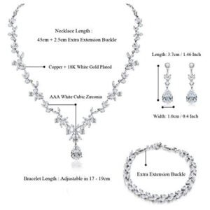 • Hadskiss Jewelry Set for Women, Necklace Dangle Earrings Bracelet Set, White Gold Plated Jewelry Set with White AAA Cubic Zirconia, Allergy Free Wedding Party Jewelry for Bridal Bridesmaid