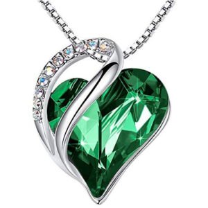 • Leafael Infinity Love Heart Pendant Necklace with Birthstone Crystals for 12 Months, Jewelry Gifts for Women, Silver-Tone, 18″+2″